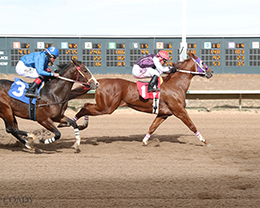 The 3-year-old bay filly by leading second-year-sire Chilitos scored her first victory of the season and first career stakes win, holding off Ladys Gotta Jet in a photo finish at the wire.