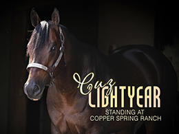 TULAROSA, NM–OCTOBER 20, 2025– Copper Spring Ranch is proud to announce that Cuz Lightyear, an All American Futurity and Derby finalist, will stand his first season in 2026 at the New Mexico ranch. The four-year-old stallion’s fee is set at $2,500, with considerations to approved mares.