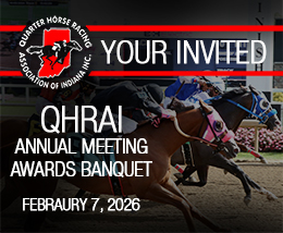 INDIANAPOLIS, IN—JANUARY 8, 2026–The Quarter Horse Racing Association of Indiana (QHRAI) will hold its 2026 Annual Meeting and 2025 Awards Banquet on Saturday, February 7, 2026, at the Wyndham Indianapolis Airport (2544 Executive Drive, Indianapolis).
