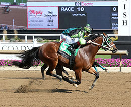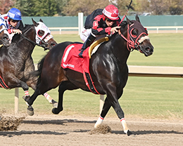 SHELBYVILLE, IN–OCTOBER 8, 2025—AP Political Patriot was on a mission in the 17th running of the $129,400 Sterlie Bertram Memorial today (October 8) at Horseshoe Indianapolis.