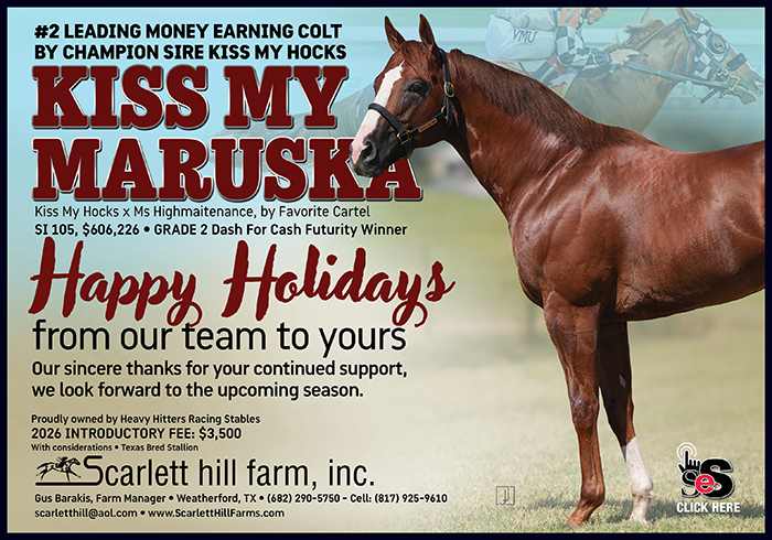 LOS ALAMITOS, CA—DECEMBER 13, 2025—La Feliz Montana Ranch and Ray Willis’ Political Twist will look to become the first juvenile to win California’s richest Quarter Horse, the Grade 1, $1,929,825 Los Alamitos Two Million Futurity, after having already won a Grade 1 futurity at Ruidoso Downs.