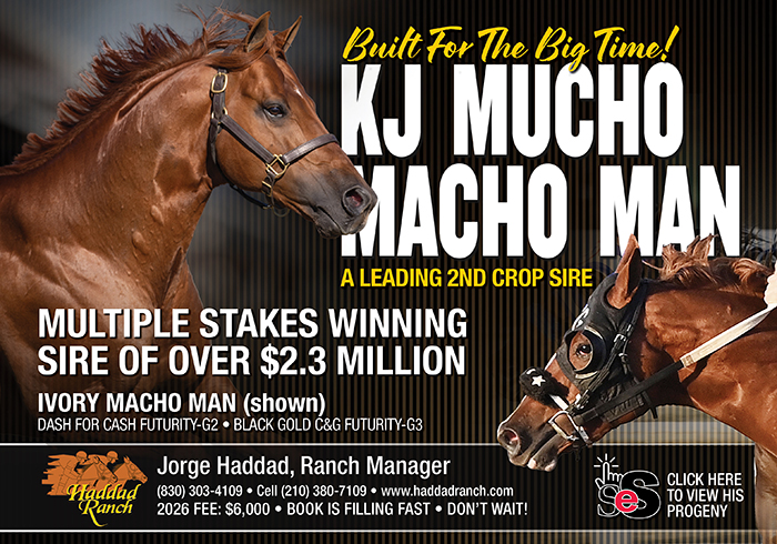 WEATHERFORD, TEXAS–NOVEMBER 27, 2025–StallioneSearch launches its 2026 Stallion Sire Profile series with a spotlight on Grade 2 Dash For Cash Futurity winner Kiss My Maruska, who will stand his first season at stud in 2026 at Scarlett Hill Farm in Weatherford, Texas.