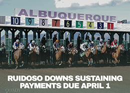 ALBUQUERQUE, NM–MARCH 25, 2026–Sustaining payments of $600 are due Wednesday, April 1 for several key stakes races scheduled for the 2026 meet for Ruidoso Downs, which will take place at The Downs at Albuquerque.
