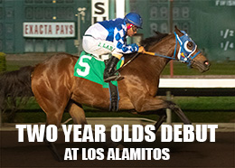LOS ALAMITOS, CA–MARCH 23, 2026–Jose Santos and Manuel Chavez’s Contentious proved to be the most impressive juvenile during the opening weekend for 2-year-olds at Los Alamitos. A full sister to 2024 Governor’s Cup Derby winner Mask Mandate, the filly cruised to a 1 1/4-length victory in her 220-yard debut on Sunday night.