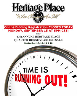 OKLAHOMA CITY, OK–SEPTEMBER 15, 2025–The deadline for online bidding registration in advance of the upcoming Heritage Place Yearling Sale arrives today at 5:00 PM (CST).