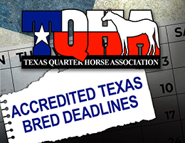 ELGIN, TX–FEBRUARY 17, 2026–The Texas Quarter Horse Association has announced several important 2026 deadlines for participants in the Accredited Texas-Bred Program.