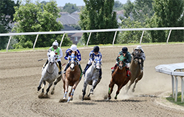 AJAX, ONT–SEPTEMBER 16, 2025–The Battle Of The Breeds headlines a packed eight-race card of Quarter Horse racing this Wednesday, September 17, 2025, at Ajax Downs. The popular 'hook' race, which pits Thoroughbreds versus Quarter Horses, is a 770-yard dash around a turn and is the first race of the afternoon.