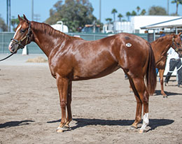 Tom Lipar's Paragon Farms paid $190,000 for Saturday's sale-topper, Hip 70 Cold Shoulder from the consignment of Burns Ranch. By leading sire Favorite Cartel, the sorrel filly is out of stakes winner Just Walk By, by Walk Thru Fire.