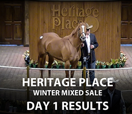 Heritage Place reported 229 of 274 horses sold during Session 1 for gross receipts of $4,557,900, with a median price of $11,500.