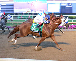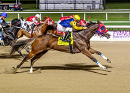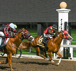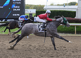 SHELBYVILLE, IN–OCTOBER 8, 2025—AP Political Patriot was on a mission in the 17th running of the $129,400 Sterlie Bertram Memorial today (October 8) at Horseshoe Indianapolis.