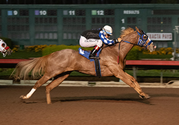 Toby Sis, one of only two fillies in the field of ten, stopped the clock in 19.559 seconds while earning a 95 speed index over 400-yards. Ridden by Francisco Calderon, her 11-1 upset returned $25.20 to win on a $2.00 wager.