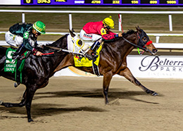AURORA, CO–NOVEMBER 16, 2025–Presido Pete kept his stakes roll alive on Sunday afternoon, powering home to win the $15,660 Rocky Mountain Championship at Arapahoe Park.