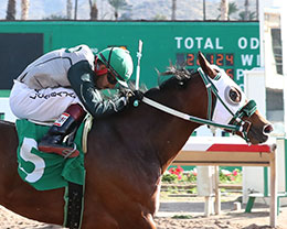 Ridden by Jorge Alberto Mares Jr., the sorrel gelding broke sharply and maintained a narrow advantage throughout, ultimately prevailing by a nose in the 400-yard dash under clear skies and a crosswind of nine miles per hour.
