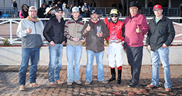 The winning connections of Apollitical Boogie J accept the $100,000 James Isaac Hobbs Stakes-G2 trophy at Zia Park on Sunday. © Coady Media