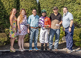 The winning connections of Aj Cyclone accept the Louisiana Classic Maiden trophy at Louisiana Downs on Saturday.© Ann Switalski Photography