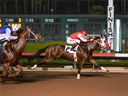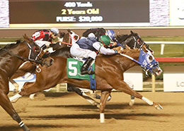 The 3-year-old bay filly by leading second-year-sire Chilitos scored her first victory of the season and first career stakes win, holding off Ladys Gotta Jet in a photo finish at the wire.