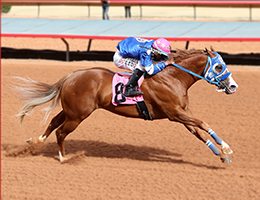 OPELOUSAS, LA–APRIL 8, 2025–Graded stakes winner and first-crop sire Hes Innocent SI 107 got his first career winner on April 3 when Shezinnnocent was a half-length winner in a $20,000 2-year-old 300-yard maiden fillies race at Remington Park.