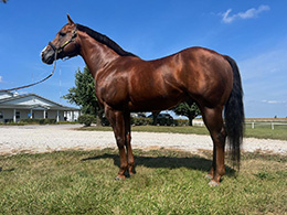 TRAFALGAR, IN–JANUARY 6, 2025– Encore, a multiple stakes siring son of Leading World Champion Sire Corona Cartel, will stand the 2026 breeding season at Midwest Equine & Veterinary Hospital in Trafalgar, Indiana. His fee is set at $1,200.
