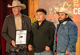 OKLAHOMA CITY, OKLAHOMA–JANUARY 17, 2026–Had To Be Fandango was honored January 14 during the AQHA Racing Champions Ceremony at Heritage Place in Oklahoma City after earning the AQHA Dam of Distinction title. The honor recognizes her impact as one of the most accomplished producing mares in Quarter Horse racing.