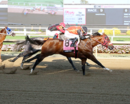 Arbitro, under champion jockey Edgar Diaz, wins the John Deere Horseshoe Indianapolis Juvenile Challenge.© Coady Media