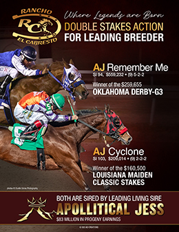 “We’re very thankful to the owners, trainers, and jockeys who do such a great job developing these horses,” said Marbella Tirado of Rancho El Cabresto. “We’re proud to see horses we’ve bred compete and succeed at this level, and we appreciate everyone involved in giving them that opportunity.”