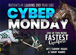 Cyber Monday closed 2025 as the nation’s No. 2 first-crop sire with more than $1 million in progeny earnings. He has carried that momentum straight into 2026, already siring 16 winners and $400,000 in earnings to lead all second-crop sires.