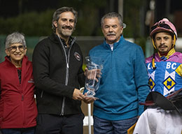 "He's a great horse," Oscar Diaz said. "Every time he starts here he gets better and better. He was a little behind but he went and caught them. Even if he's not (in the Champion of Champions) we know that he's a good horse. He's now running with the big guys."