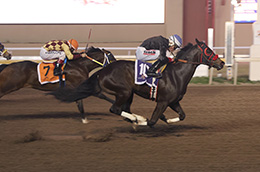 Runner-up Dulce Dinero, the sixth-fastest qualifier, finished in :15.626 seconds, while posting an 85 speed index. The homebred gelding races for Shari Burger and Vickie McBee, is trained by Jesus Ruben Ruiz, and was ridden by James Flores.