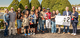 The winning connections of Whoopie Cowgirl accept the $313,008 Louisiana Downs Futurity (G2) trophy at Louisiana Downs on Saturday. © Ann Switalski Photography