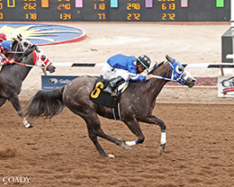 Ridden by Luis Angel Flores Garcia, the gelding overcame early traffic, advanced through the stretch, and drew clear late to defeat Ima China Girl, while Kings Landing finished third. The winner earned $47,000.