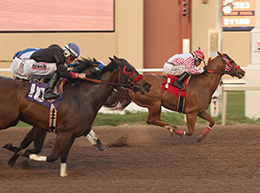 Clareets Boy, breaking from the 1-post position, was oblivious to the chaos going on to his outside and burst to the third win of his career. Despite his long string of hard-luck losses, the betting public had not given up on him. He was sent off as the heavy 4-5 post-time favorite and paid $3.60 to win, $2.40 to place and $2.20 to show. He covered the 350 yards in :17.732 on the fast track for an 86 speed index. Trainer Samuel Mendoza had him revved up and ready to fire a big one for owner Victor Mendoza of Bozeman, Mont.