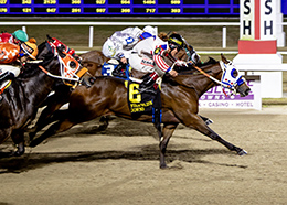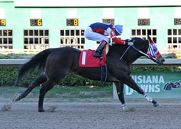 Rider Federico Vargas had the call and surged to a neck-victory in the 350-yard stakes in 17.845 seconds. The talented juvenile pulled off the biggest upset of the Louisiana Million stakes-filled card, paying $31.80 for his proud connections, owner Emily Loup and her husband Wade, who bred the gelding.