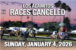 LOS ALAMITOS, CA—JANUARY 4, 2026—With rain set to continue throughout the day in Southern California, Los Alamitos has cancelled its racing program for Sunday night.