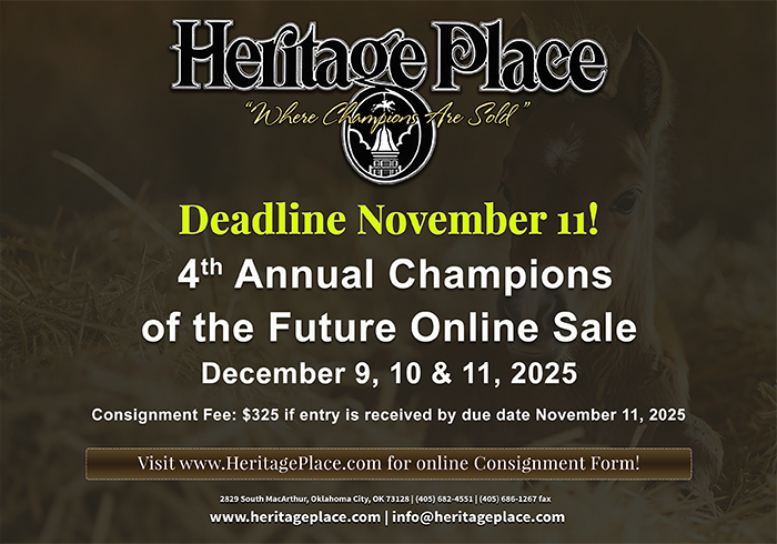 - Consignment Deadline Announced for Heritage Place Champions of the Future Foal in Utero Online Sale