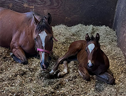 Atta Boy Slim as a weanling.© courtesy of Emily Loup Atta Boy Slim was foaled on the Loup farm in Folsom, Louisiana, on January 3, 2023. Emily remembers the mark on his forehead that looked like a teardrop, and she immediately thought of her son, Michael, who had died unexpectedly on December 11, 2022.