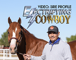 ANTHONY, NM—DECEMBER 24, 2025–StallioneSearch.com will spotlight Electrifying Cowboy in the second installment of the 2026 Sire Profile Series, set to premiere January 1.