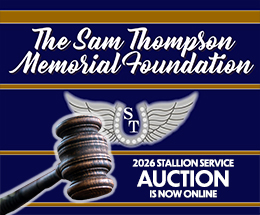 OKLAHOMA CITY, OK–JANUARY 2, 2026–The Sam Thompson Memorial Foundation announced its third annual online stallion service auction will run from January 2 through January 30, 2026, closing at 6:00 p.m. CST.