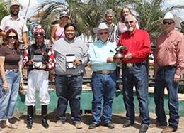 Seven-time Grade 1 winner Kj Desparado boosted his all-time earnings record to $3,348,007 after finishing second. Wesley Giles conditions the Arizona homebred son of leading sire Apollitical Jess for owner-breeders John and Kathy Lee, and Ruben Mares. The 6-year-old gelding is out of Tres Veses by Tres Seis. Ridden by Emilio Tapia, he has won 17 of 30 starts.