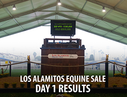 Tom Lipar/Paragon Farms was the leading buyer on day 1 with two purchases for $237,000. Alex Castaneda paid $176,700 for eight head and Valeriano Racing Stables, LLC purchased two head for $174,000.