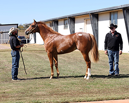 Equestix Consulting LLC paid $92,000 for Thursday's second high-seller, Hip #32, Sumoke Show, a colt by leading sire Kiss My Hocks from the stakes winner and multiple stakes producer Sumokin by Country Chicks Man. Roger Daly, Agent for Corner K Quarter Horses LLC, consigned the half-brother to four black type, including La Fiesta Futurity winner JM Country Man.