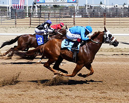 Runner-up Fire Of The Mountain earned $15,000 for finishing second. Joe Hadley trains the Jr Dynasty Mountain homebred for owner-breeders Larry and Joyce Mower. Bred in Utah, from the Vital Sign mare Sheza Signature, Fire Of The Mountain has earned $57,192. Fernando Gamez was riding.