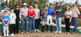 Alitlelesstalk’s winning connections from the AQRA Futurity at Turf Paradise on Friday. © Coady Media Tell Cartel’s impact didn’t stop there. Earlier on Friday’s card, his foals also swept the opener, finishing 1-2-3 in the AQRA Futurity Consolation.