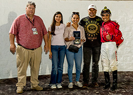 Under jockey Victor Urieta Jr., Konnan Cartel overcame a less-than-perfect start and rallied to the lead, stopping the clock in :15.301 seconds while posting a 96 speed index. The brown gelding, bred by Luis Armando Castellanos and owned by Dania Castellanos, is trained by Santiago Villaseca.