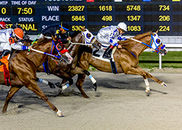 Apoliticalgolddigger, under the expert handling of leading rider Juan Pulido, outlasted the other fastest qualifier from the two nights of trials, Whatdyathinkofmenow, to win by a head as ...
