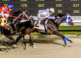 Breaking from the outside post, Dropping Dimes broke a step slow but began to unwind through the lane under jockey Jorge Javier Garcia. The black gelding closed steadily and caught the leader at the wire, stopping the clock in 19.910 seconds into a 5 mph crosswind while earning ...
