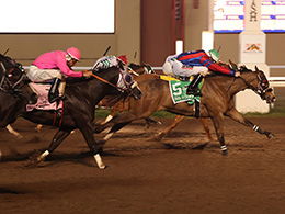 OKLAHOMA CITY, OK–APRIL 18, 2026–Apoliticalgolddigger came out on the winning end as the two fastest qualifiers from trials hooked up all the way to the wire in the $971,955 Remington Park Futurity (RG1) on Saturday night.