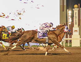 SUNLAND PARK, NM–APRIL 4, 2026– Baby Daddy Cartel surged late to win the $100,000 New Mexican Spring Fling Stakes on April 4 at Sunland Park, covering 300 yards in :15.249 seconds over a fast track.