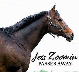 Owned by Mark and Teresa Myers and Roger Cyrulik, Jess Zoomin made his presence known early on the racetrack. He won four races and earned multiple graded stakes placings before retiring in 2009 with $461,126 in earnings.