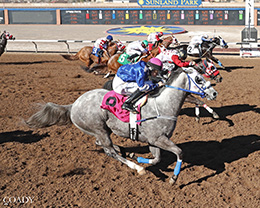 HONDO, NM–FEBRUARY 28, 2026– Suspicious Interest, an unraced son of multiple stakes sire Separate Interest, recorded his first stakes winner Saturday at Sunland Park.