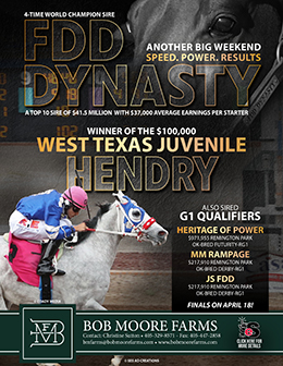 NORMAN, OK–APRIL 6, 2026–FDD Dynasty’s reach continues to stretch across the map, with this past weekend highlighted by a stakes winner at Sunland Park and a major futurity and derby trials at Remington Park.